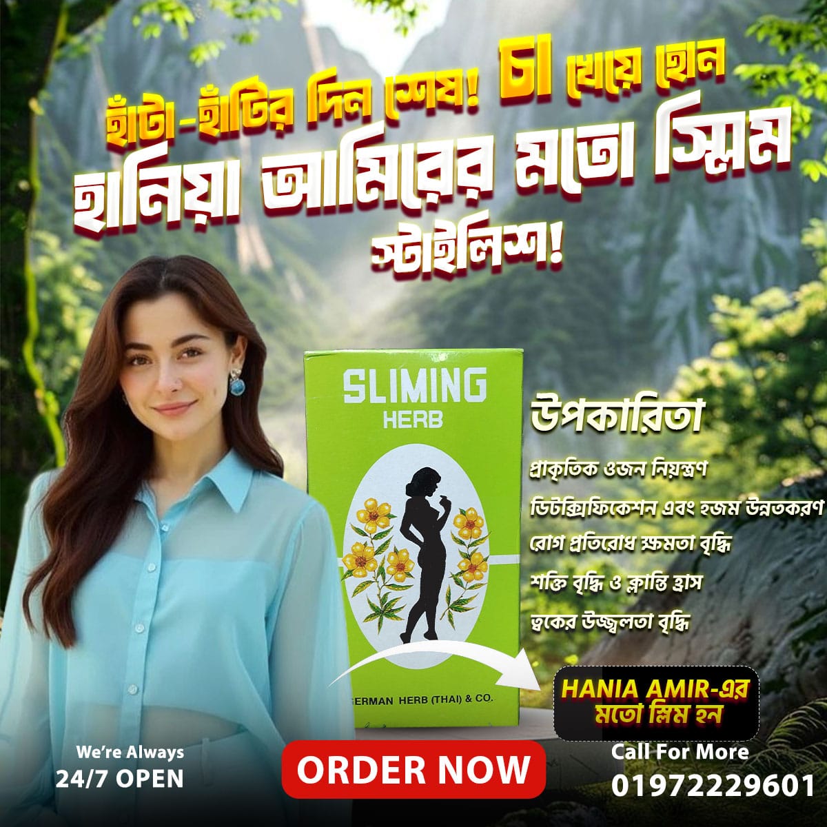 Sliming Herb হলো একটি প্রাকৃতিক ও হারবাল পণ্য, যা তৈরি করেছে ERMAN HERB (THAI) & CO — থাইল্যান্ডের সুপরিচিত হারবাল কোম্পানি। এটি ওজন কমানোর জন্য বিশেষভাবে তৈরি একটি হারবাল টি বা ক্যাপসুল, যা শরীরের অতিরিক্ত চর্বি কমাতে এবং শরীরকে ডিটক্সিফাই করতে সহায়তা করে।