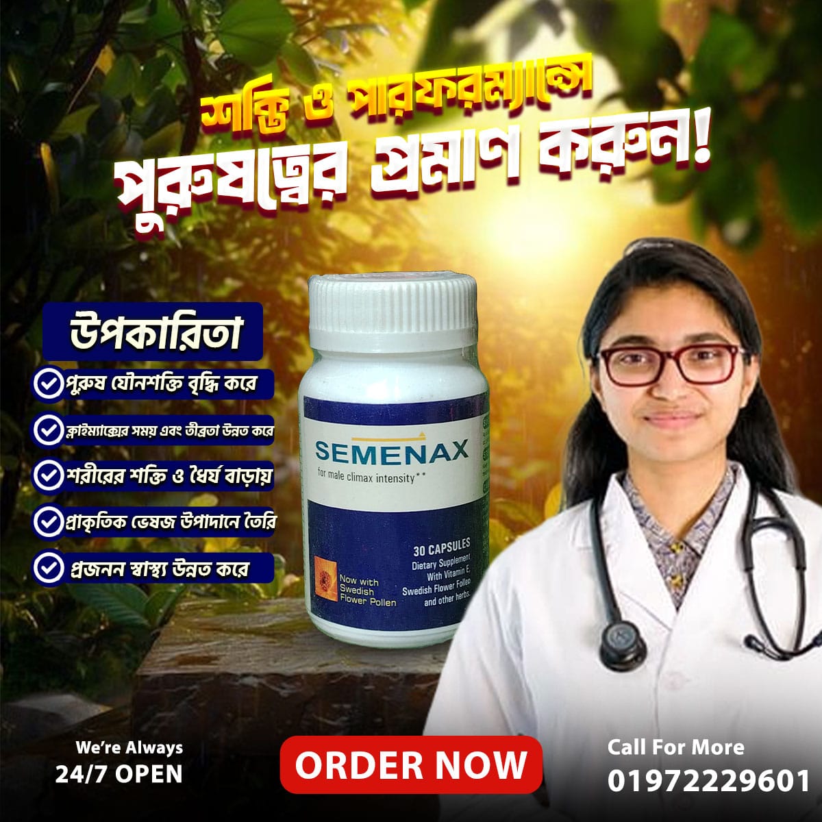 Semenax হলো পুরুষদের জন্য প্রাকৃতিকভাবে তৈরি একটি হারবাল ডায়েটারি সাপ্লিমেন্ট। এটি পুরুষ হরমোনের কার্যক্রম উন্নত করে, স্ট্যামিনা ও শক্তি বৃদ্ধি করে এবং সার্বিক পারফরম্যান্স উন্নত করতে সাহায্য করে।