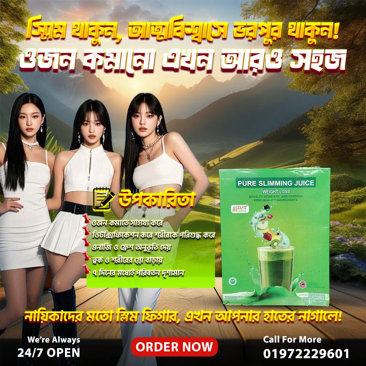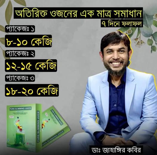 Pure Slimming Juice একটি প্রাকৃতিক ওজন নিয়ন্ত্রণ ড্রিংক মিক্স, যা চর্বি পোড়াতে, মেটাবলিজম বাড়াতে এবং শরীরের টক্সিন বের করতে সাহায্য করে। এটি প্রিমিয়াম হার্বাল ও ফলের এক্সট্র্যাক্ট দিয়ে তৈরি, হজম প্রক্রিয়াকে সহায়তা করে এবং আপনাকে আরও স্লিম ও শক্তিশালী শরীর প্রদান করে।